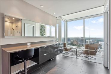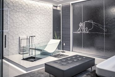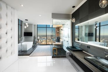 Originally, Vyk planned a two- to four-person jacuzzi on a custom platform in the master area. The building, however, declined the request:
