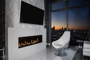 A 6,000 sq ft penthouse created by combining two builder-grade units into one modern, white, gallery-like home. Designed and built in two phases, this project features a story-driven, honeycomb bar crafted in Lithuania, a sculptural stair wall, a custom glass tub from Australia, and a reimagined primary suite and office—all within the constraints of a high-rise building in Midtown Atlanta.